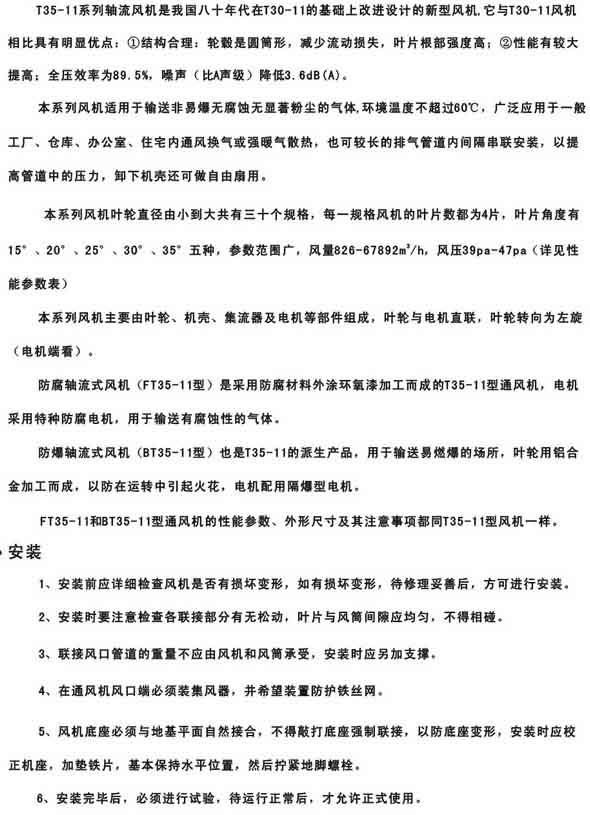 产品名称:T35-11(T40-11)型轴流通风机